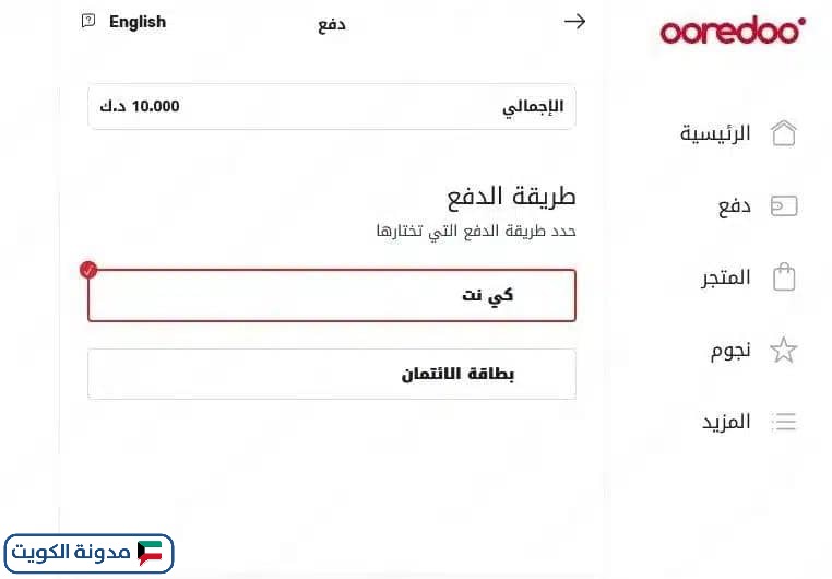 - فتح صفحة الدفع السريع أوريدو الكويت “من هنا“.